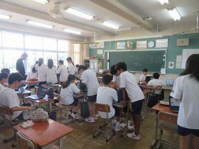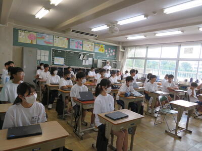 暑さ対策のため、各教室リモートでの始業式・表彰式が行われました。