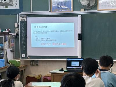 本日、三年生は校長面接についての説明をリモートで行いました。