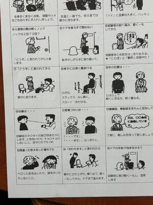 説明に合わせて資料が配られました。資料には面接の流れやポイントがイラスト付きでわかりやすく書いてあります。