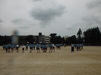 初めての校庭での練習です。
