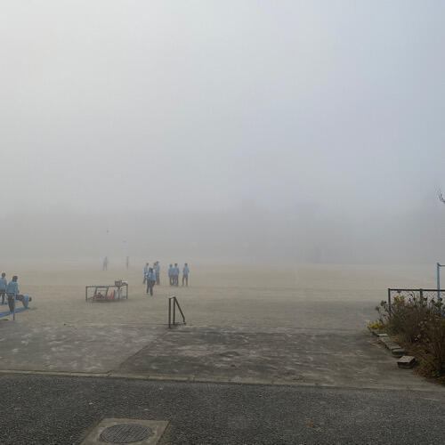 濃霧の朝となりました。隣の中原小学校が見えません。