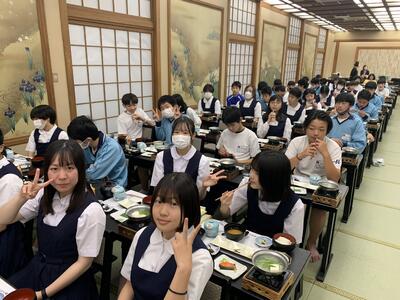 学級別活動が終了し、京都駅前のハトヤ瑞鳳閣さんで昼食をとっています。