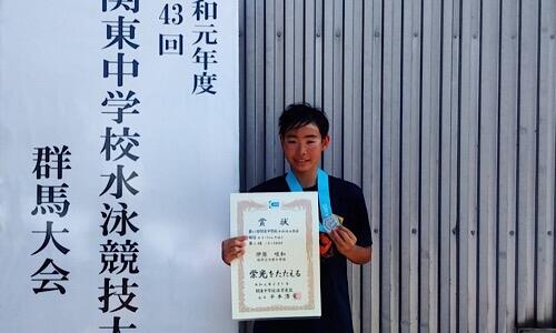 8月9日、群馬県敷島公園水泳場で開催された、第43回関東中学校水泳競技大会に、中原中学校の伊原咲和さんが出場し、女子100m平泳ぎで準優勝という素晴らしい成績を残しました。おめでとうございます。
