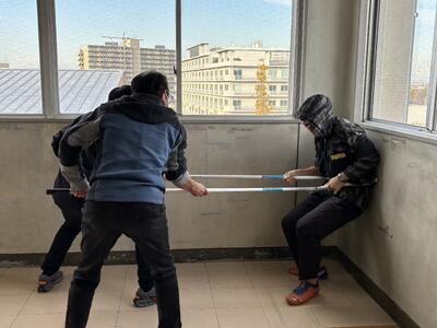 教員が不審者役となり、廊下を徘徊し教室に侵入しようとする素振りをしましたが、バリケードを作ることの重要性を理解している様子でした。