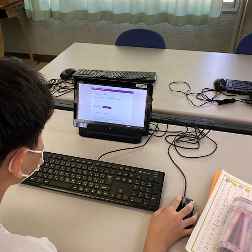 3年生は1時間目の国語のテストに集中して取り組んでいます。