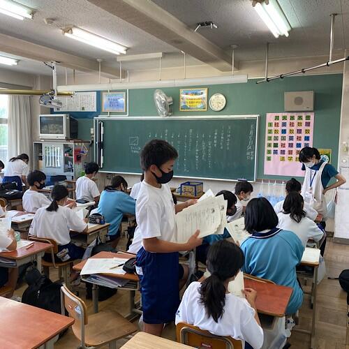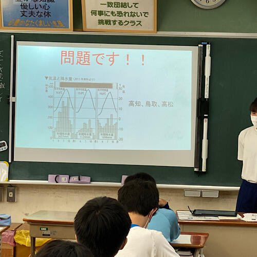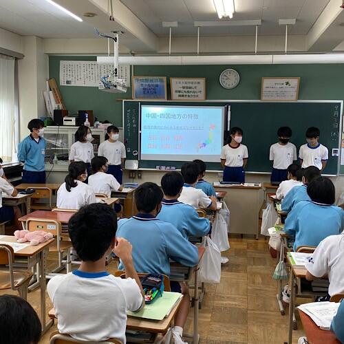 2年生の社会科では、Googleスライドで協働作業した「日本の諸地域」の調べ学習のプレゼンテーションを行いました。最初のグループは「中国・四国地方」一人一人が自分のパートをしっかりと発表していました。調べ学習はコンピュータ室で行いましたが、次年度は各教室で一人一台のパソコンが使えるようになります。プレゼンの方法や評価にも生かせるようになるでしょう。どんな取り組みができるか、今のうちにいろいろなことに挑戦したいですね。