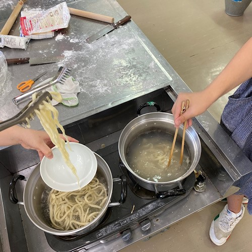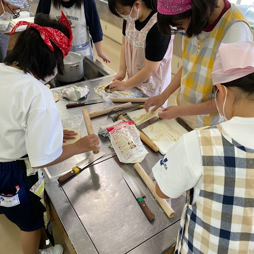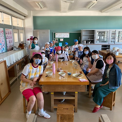 今日はスマイル学級で、レクレーションを兼ねた調理実習を行いました。うどんを手打ちして、カレーうどんとフルーツポンチを作りました。2年生は陶芸で作成した自作のどんぶりで食べました。カレーには畑でとれた野菜がたくさん使われています。自分たちが育てた野菜で作った料理を、自分たちで作った器でいただく。とても素敵な活動だなと思います。ごちそうさまでした。