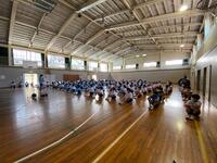 3年生は体育館でソーシャルディスタンスを保って集会を実施しました。