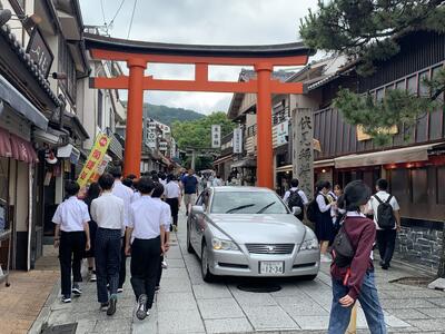 4組は伏見稲荷大社の見学に来ました。本殿へのお参りと千本鳥居の見学を行いました。