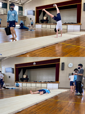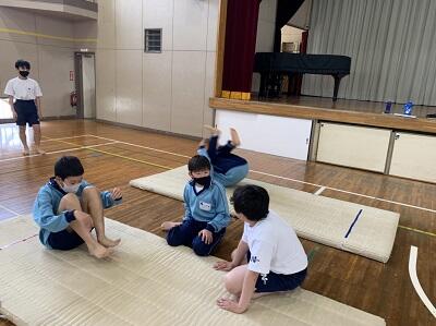 1年生の男子は体育でマット運動が始まりました。