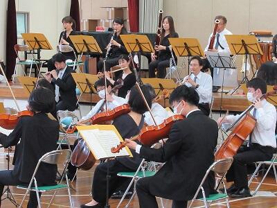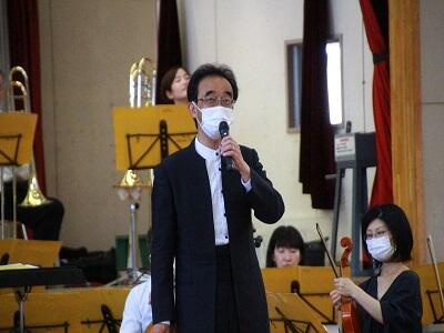 コロナ禍にもかかわらず中原中に来ていただき、演奏してくださった千葉交響楽団の皆さん。演奏する曲についてのわかりやすい説明をしてくださった山上純司氏。