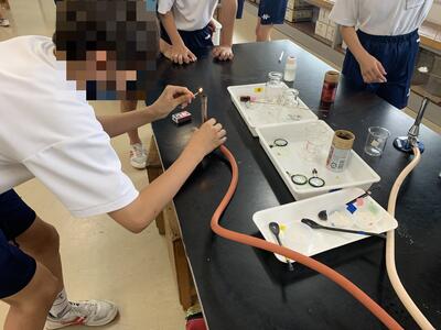 1年生の理科ではガスバーナーを使った実験を行っていました。