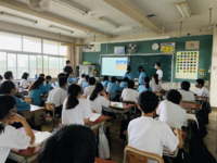 3年生は体育館でソーシャルディスタンスを保って集会を実施しました。