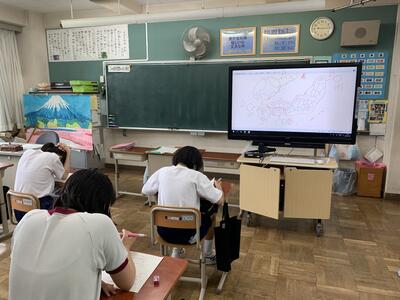 社会の授業では、取り込んだ地図に書き込みながら学習をしています。