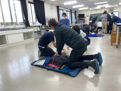 本日の午後は職員の研修として、主に心肺蘇生法とAEDの使用手順について学びました。