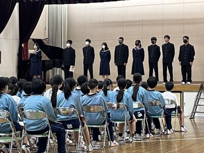 後半には、2・3年生から歓迎の歌「大切なもの」、1年生からお礼の歌として中原中学校の校歌を歌いました。