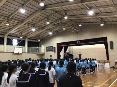 最後は全校で中原中校歌を歌いました。入学式よりも1年生が歌えるようになり、体育館に大きな声が響き渡りました。これから中原中学校の合唱がどのようになっていくのか、とても楽しみです。