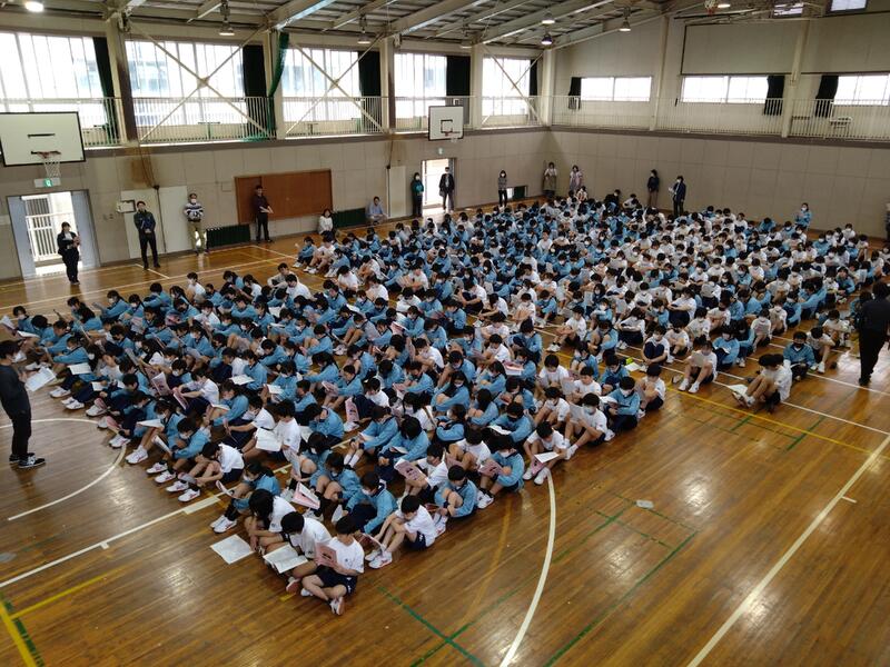 全校が一堂に集い、集会の整列隊形を把握しました。