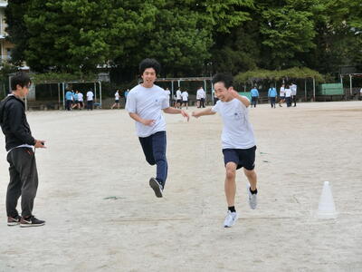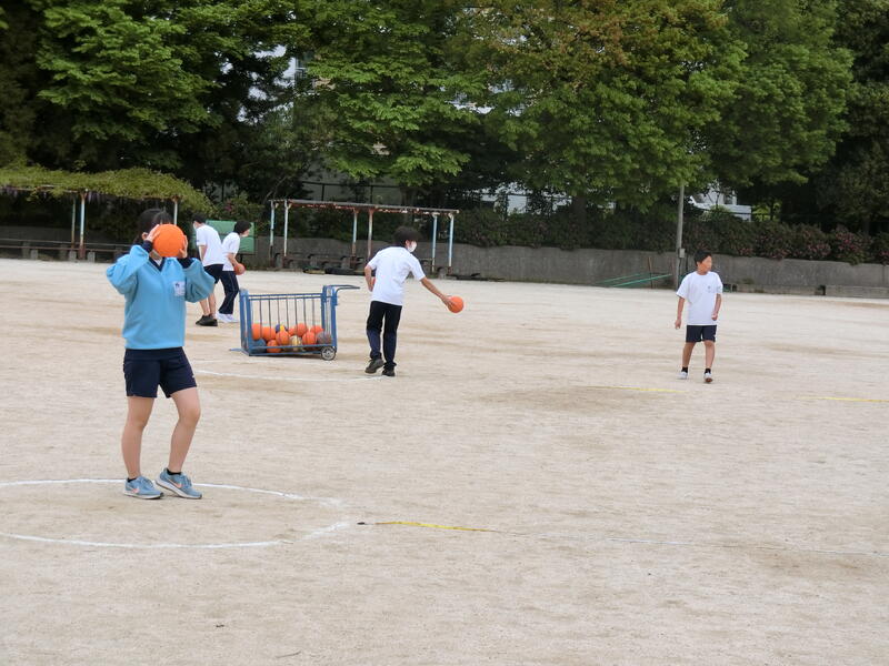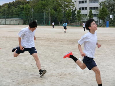 体育の授業ではスポーツテストを行っています。本日はグラウンドで2年生が50メートル走とハンドボール投げの計測をしました。天気は曇りでしたが、雲を吹き飛ばすほどさわやかな様子でした。