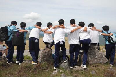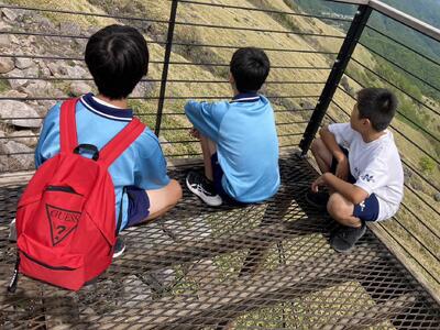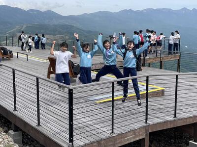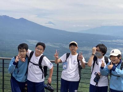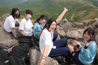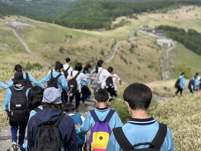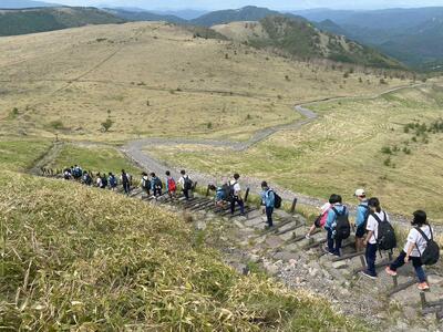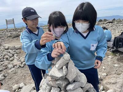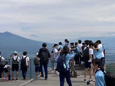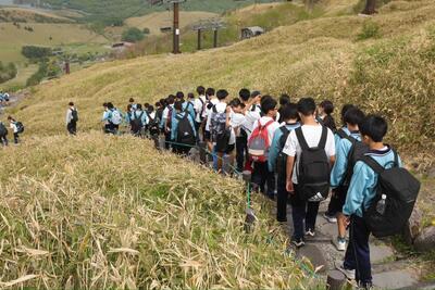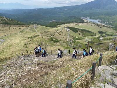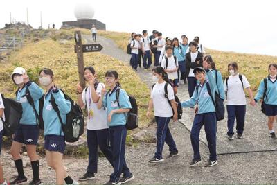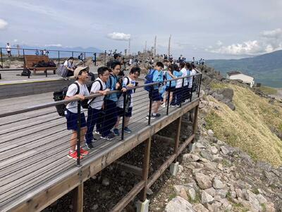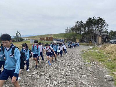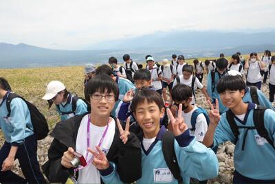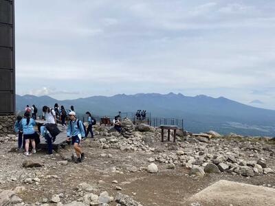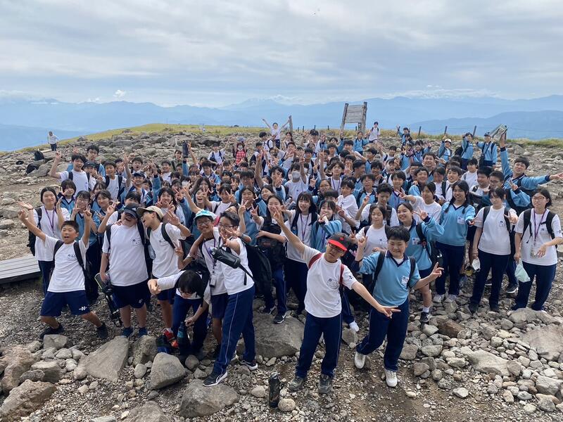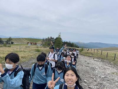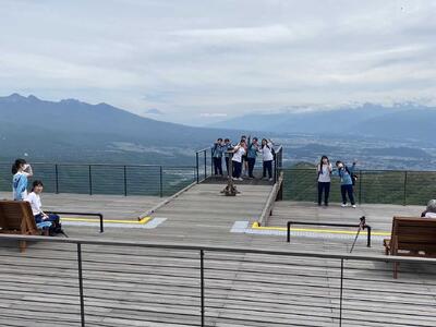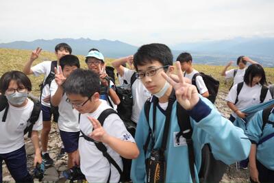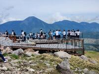 車山山頂に到着しました。山頂では学級ごとに集合写真を撮影して、しばらくの間のんびりと景色を堪能しました。