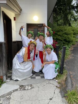 その後のフォークダンスは「マイムマイム」、「オクラホマミキサー」、「コロブチカ」、「ジンギスカン」を踊りました。