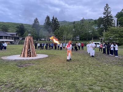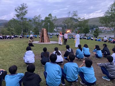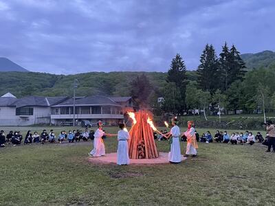 林間学校前から入念に準備をしていたキャンプファイヤー。