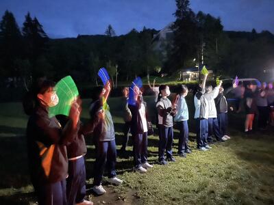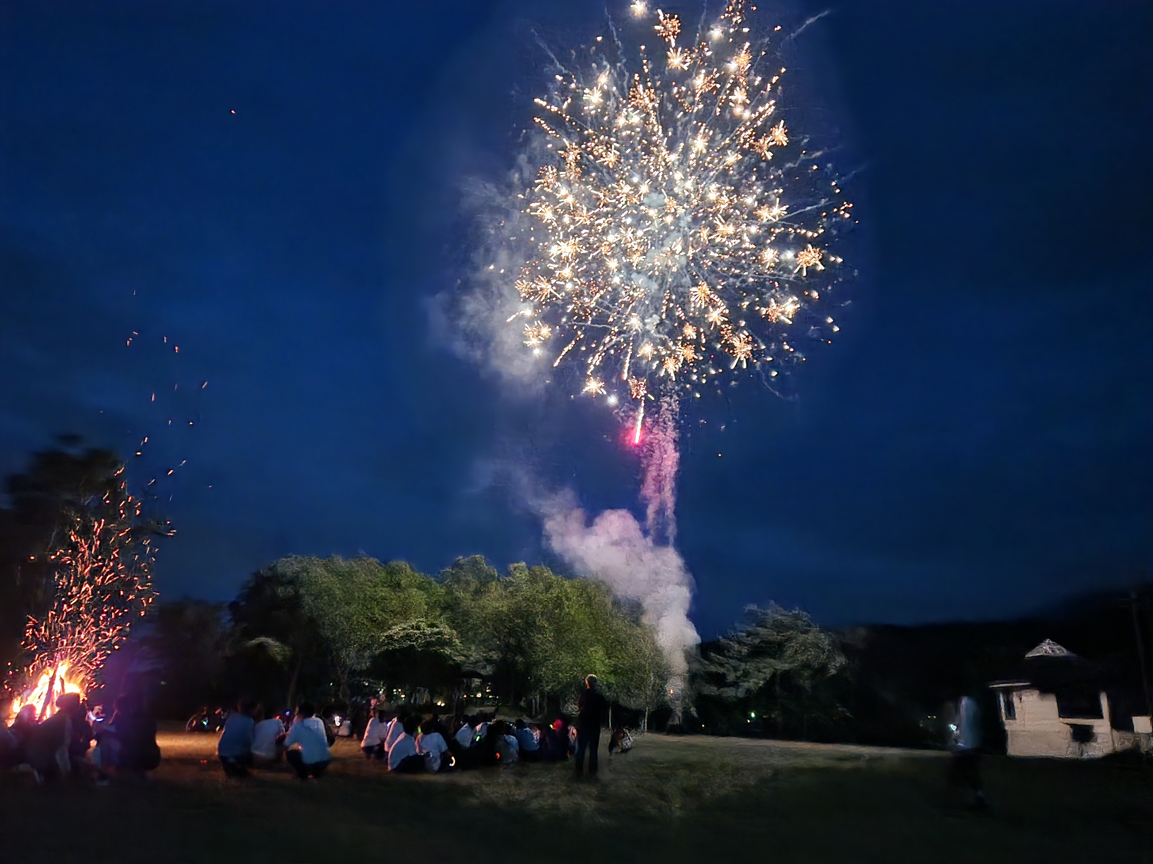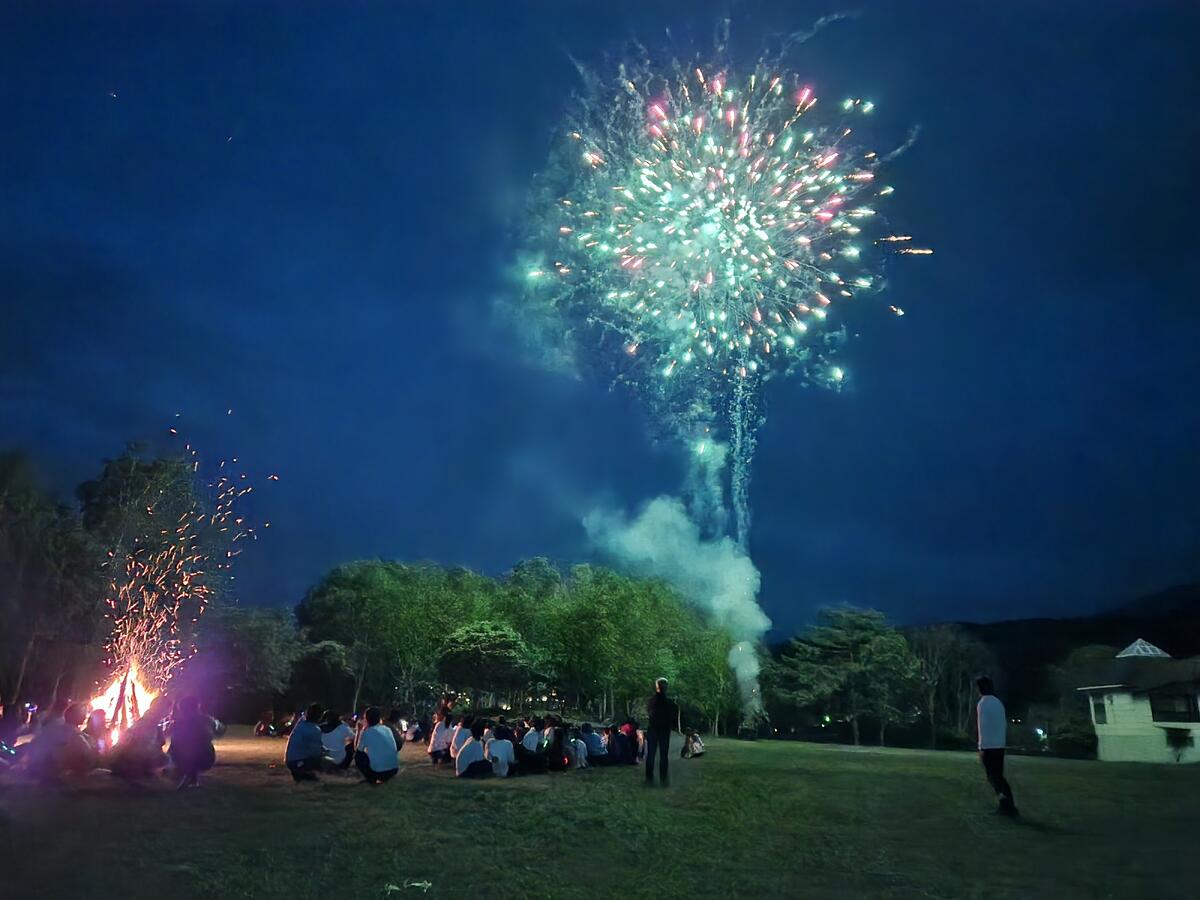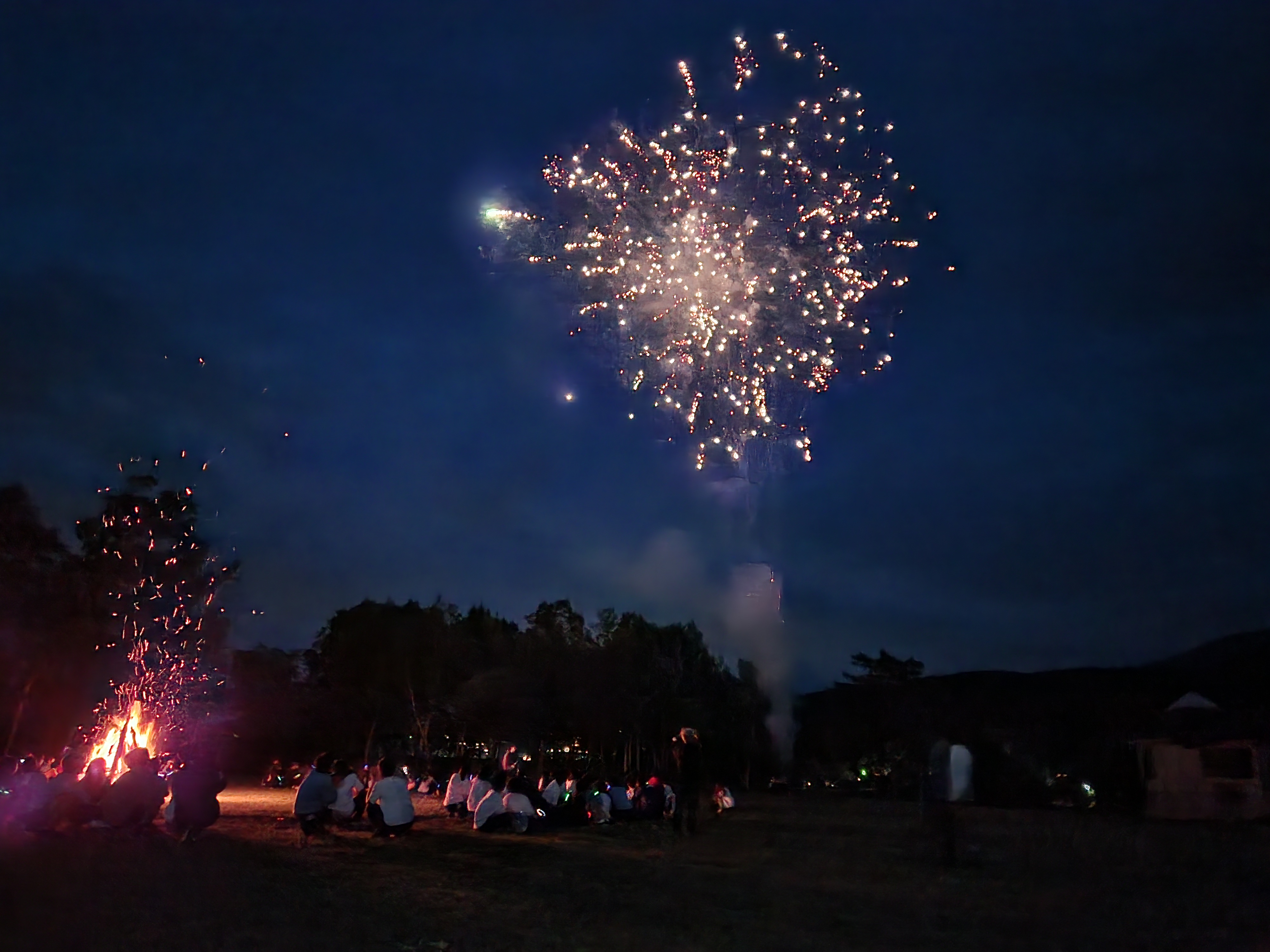 キャンプファイヤーのラストにサプライズ花火が打ち上げられました。子供たちも歓声をあげ大喜びでした。