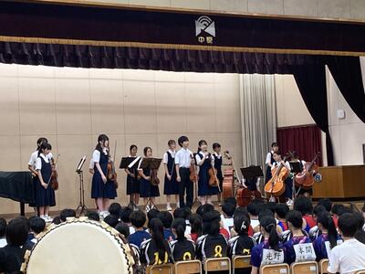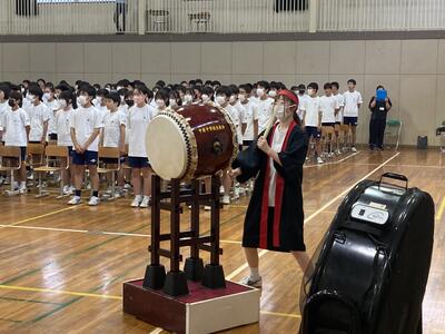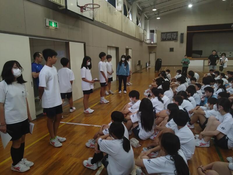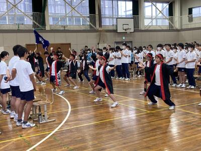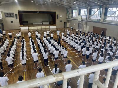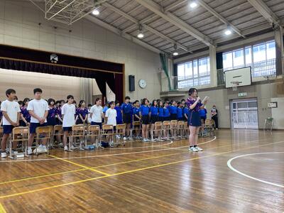 3年生が修学旅行中に体育館にて1・2年生合同でとある行事の練習を行いました。