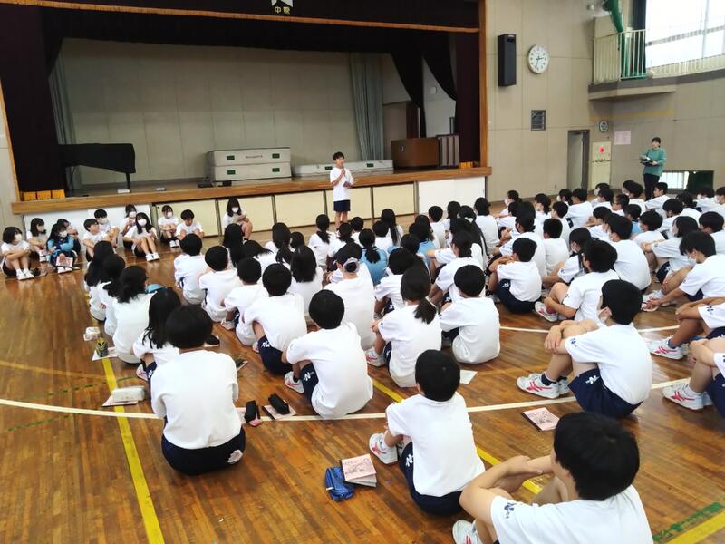 6/27(木)に1学年は校外学習に向けて、しおりの全体読み合わせを行いました。