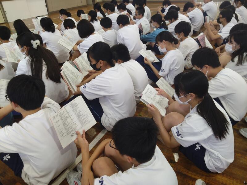 聞いている生徒はしおりに線を引いたり、メモを取るなど、真剣に臨んでいる様子が見られました。