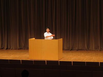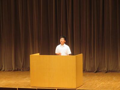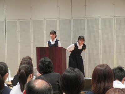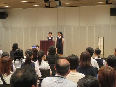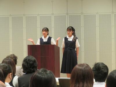 暗唱の部には,1年生の阿部さんと宮嶋さんがペアで参加し,スピーチの部には2年生の片渕くんが参加しました。3名は,この夏休みも担当の先生たちと一生懸命練習に取り組んでいました。今日の本番は,大勢の参観者を目の前にきっとものすごく緊張したと思いますが,これまでの練習の成果を発揮して,会場に響きわたるほどの立派な声に手ぶり身ぶりを交えながら,素晴らしい発表をすることができました。これからも積極的に挑戦して英語力を高めてほしいですね。お疲れ様でした。