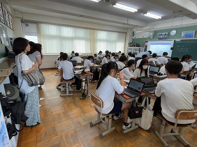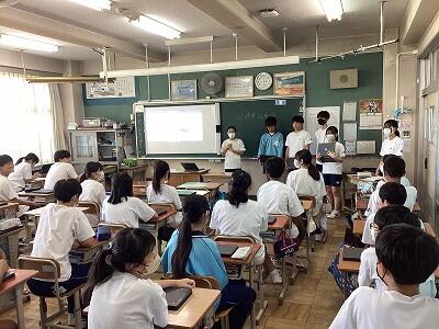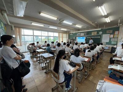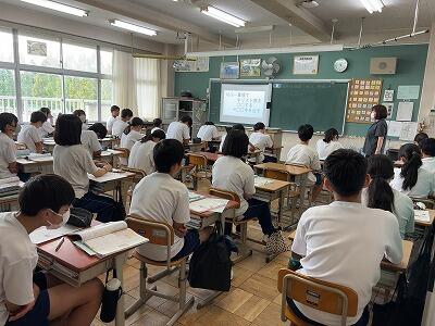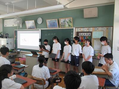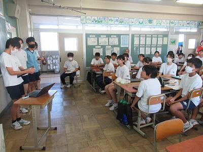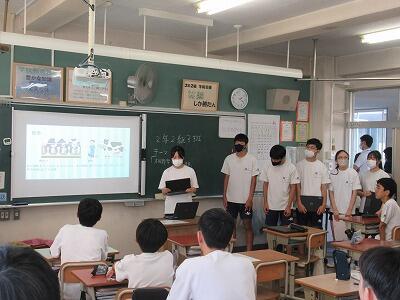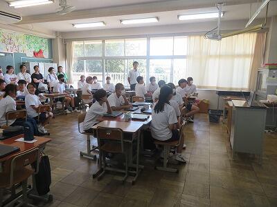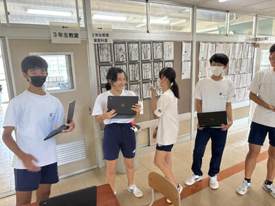 9月20日(金),一日授業参観を実施しました。午前中は教科の授業を4時間,午後は各教室で3学年合同によるプレゼンテーション発表会を公開しました。午後の発表会は一つの教室に1~3年までの生徒が各学級1~2班集まり,先輩後輩が一緒に互いの発表を見合えるように行いました。1年生は初めての発表で緊張したと思いますが,なかなか頑張っていたと思います。2・3年生は昨年の経験もあり,工夫されたすばらしい発表を披露してくれました。