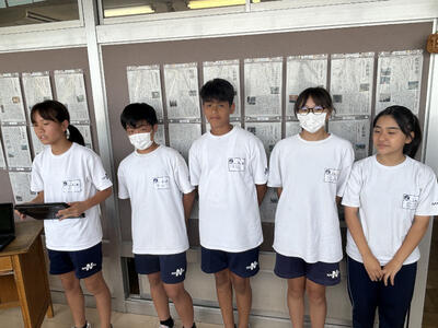 昨日に続き,今日は2年生の生徒会役員立候補者が,朝の登校時の正門付近で選挙活動にのぞみました。6名が立候補していますが,どの候補者も2年生らしく,1年生に負けないくらいの元気な声で自身をアピールしていました。選挙当日まで,ちょうど1週間となりました。1,2年生合わせて定数が9名のところに12名が立候補しています。