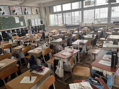 第1回目とは異なり、生徒には事前に避難訓練の日時や避難方法は知らせず、1時間目の授業の始めに行いました。