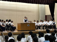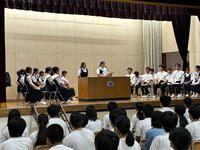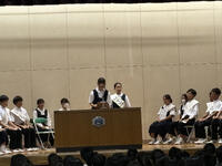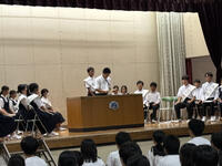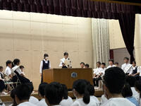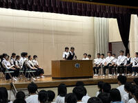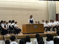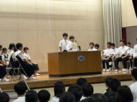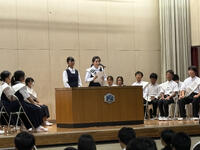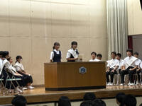 事前に作成し、担任の先生からアドバイス頂いた原稿をもとに、実際に全体の前で話す練習しました。