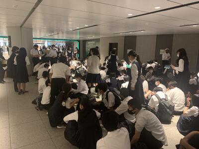 東京駅に全ての班が到着し、出発式を行なっています。