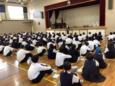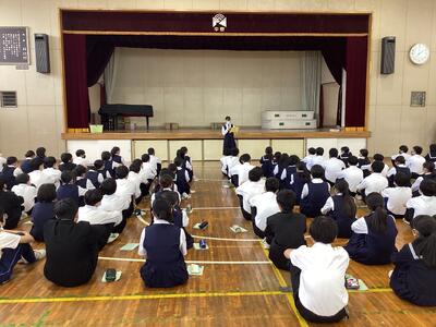 本日5時間目に林間学校事前集会を行いました。
