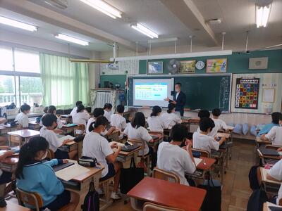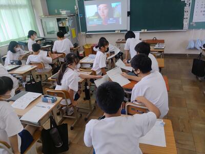 他の学級は教室でリモート視聴にて参加しました。