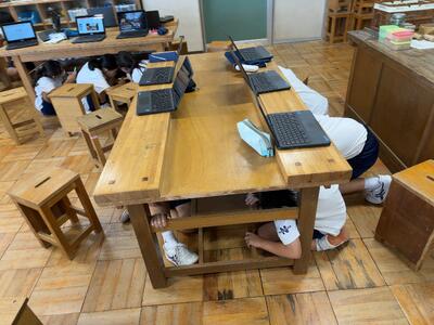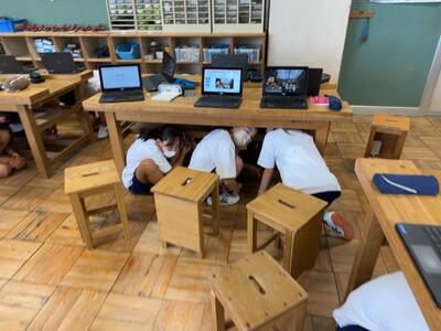 技術室から避難訓練が始まりました。(大軒先生の意図)