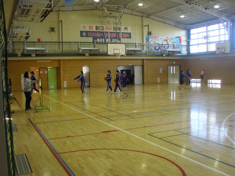 体育館では暖房が効いた快適な空間で,バスケットボールの授業をしていました。