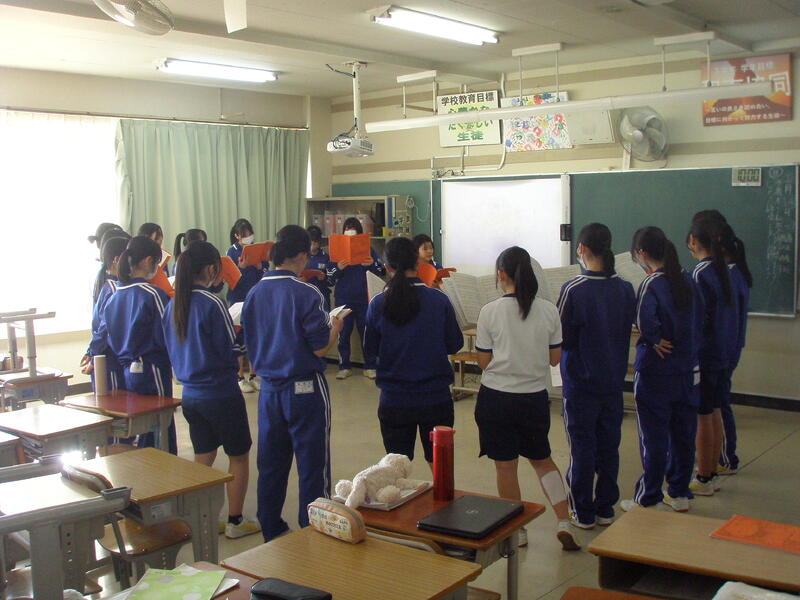 3年生は合唱のパート練習。1年生は係に分かれ活動をしていました。