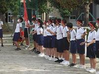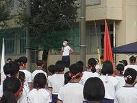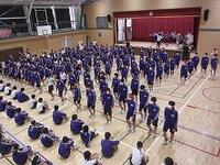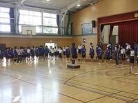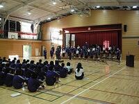 解散式の様子です。さすがに疲れた表情でしたが,充実した満足そうな様子で学校に無事に帰ってきました。