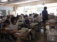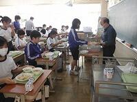 給食の時間です。全体の様子を見ていると,断トツで1年3組の準備が早かったです。体育のリレー練習で走るのを頑張って,お腹が空いているからでしょうか?いえいえ,失礼しました。最近は,静かで素早い準備ができていて素晴らしいです。ご飯のおかわりも大盛りに!やはり,お腹が空いているのですね。たくさん食べて成長して下さい。