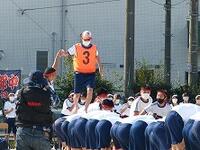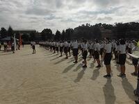入退場の練習では,最初の行進からみんなの息がピッタリでした。こんなに最初から上手にできるのは,ここ最近ないと,先生方も驚いていました。いよいよ競技の練習が始まると,体育祭練習が始まったなあという感じです。生徒たちの声が響き渡り,活気がでてきました。