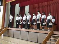 今年度の修了式が,1,2年生参加で立派な態度で無事に終えました。3年生が残してくれたことを後輩がしっかり