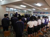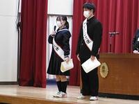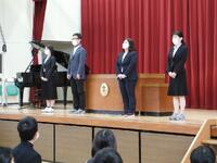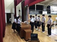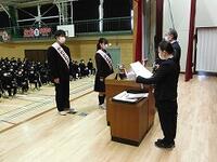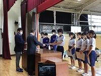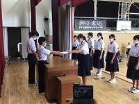 生徒会任命式がありました。旧生徒会と旧委員長のメンバーには感謝状が贈呈され,新生徒会と新委員長のメンバーには任命書が渡されました。体育館の様子をMeetで,各教室で視聴しました。