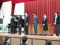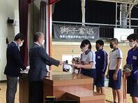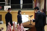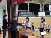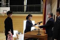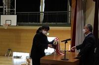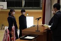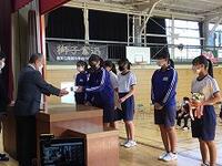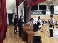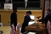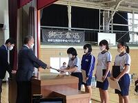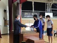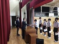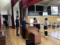 最初にノートコンテスト優秀賞や男子剣道部,吹奏楽部の柏市教育奨励賞の表彰がありました。