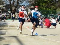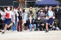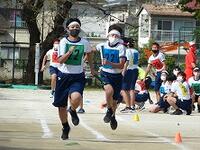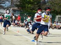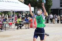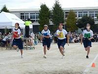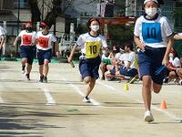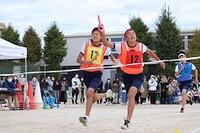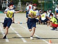 花形種目の「色別対応リレー」それぞれの組の足自慢が競い合いました.最後のアンカーも