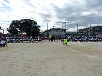 開会式前には,教職員も円陣を組んで心一つ!保護者の受付もPTAの協力を得て,大変助かりました。