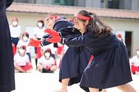 女子の全学年による戦いでしたが,1勝1敗で3年だけの勝負になり,女子も赤組の勝利!
